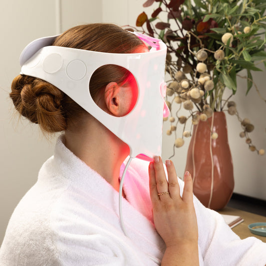 The Clear and Calming Mask is a transformative tool for those dealing with acne or rosacea, combining blue and red light therapy to reduce inflammation, support healing and visibly calm the skin.